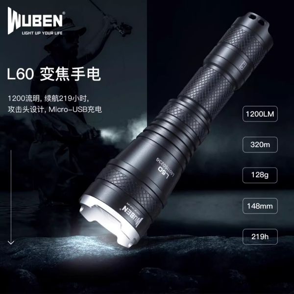 - 2025-10-15 14:03WUBEN L60 1200 流明 320米 可變焦戰術手電筒 攻擊頭
