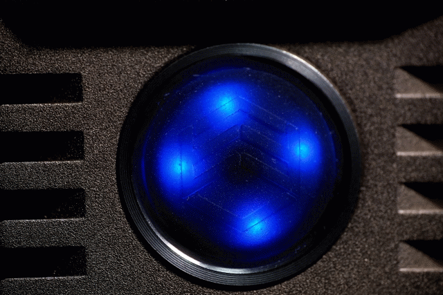 側按鍵有四顆藍光 LED 指示燈,待機時四顆全亮