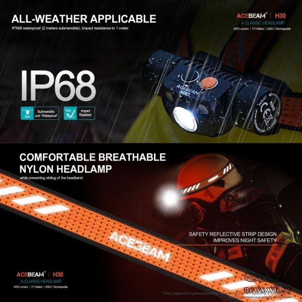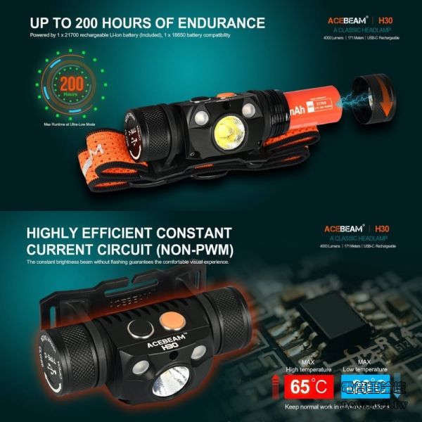 ACEBEAM H30 +UV 4000瑈 方繷縊 獂蔼瞯 TYPE-C 18650