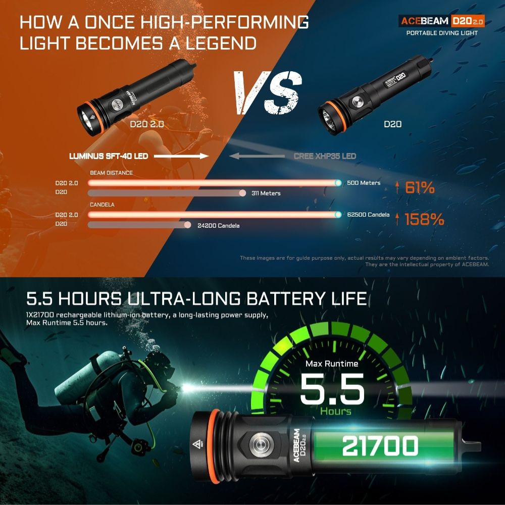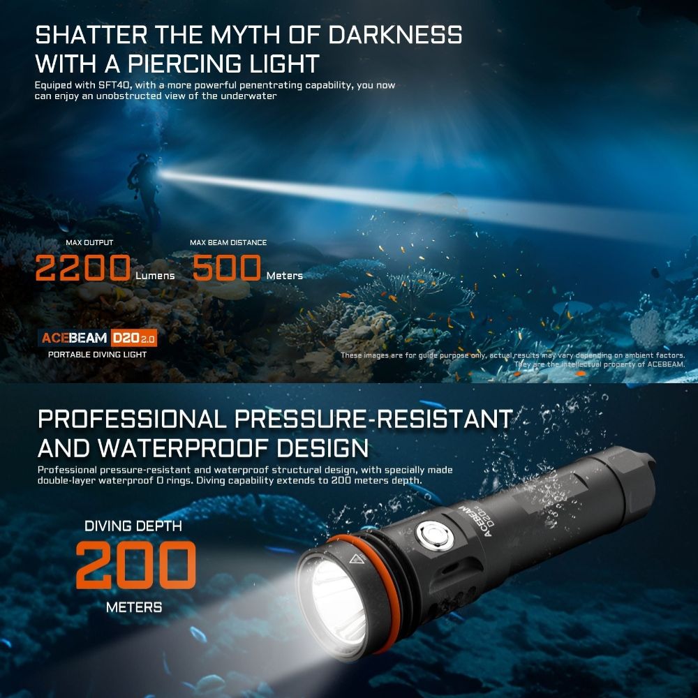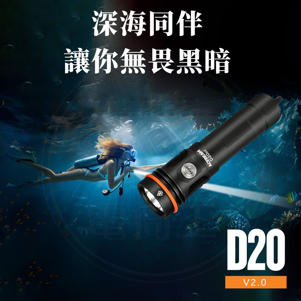 ACEBEAM D20 2.0 2200流明 500米 潛水手電筒 聚光 水下200米 抗海水腐蝕 21700