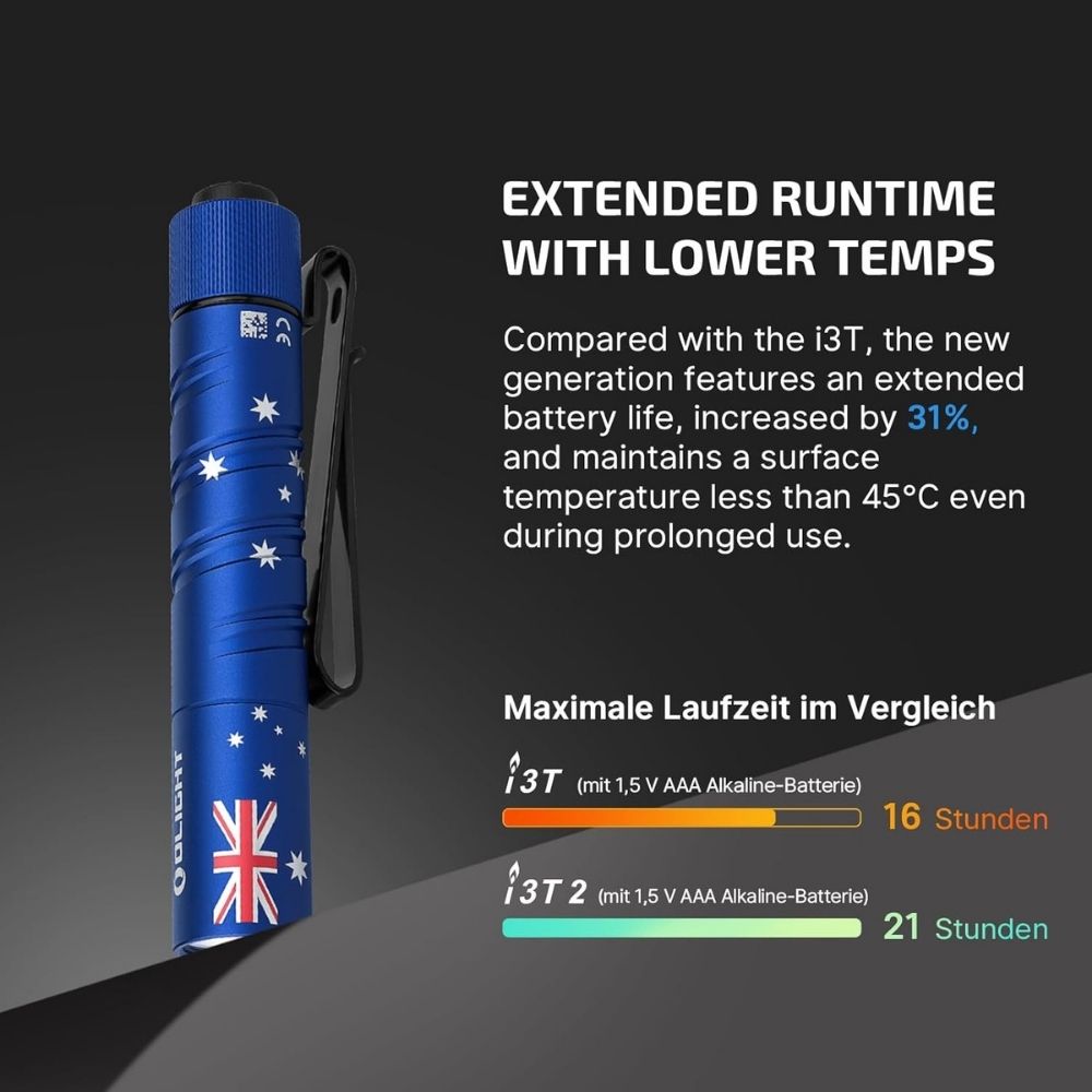 I3T 2是I3T的升級產品,使用AAA鹼性電池,相容10440鋰離子電池,保留尾部戰術開關,優化了夾子,增加模式選擇功能,使用者可以根據自己的喜好設置預設起始檔位。