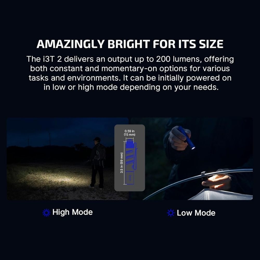 OLIGHT i3T 2 200流明 62米 雙輸出 EDC手電筒 雙向背夾 帽簷燈 AAA/10440