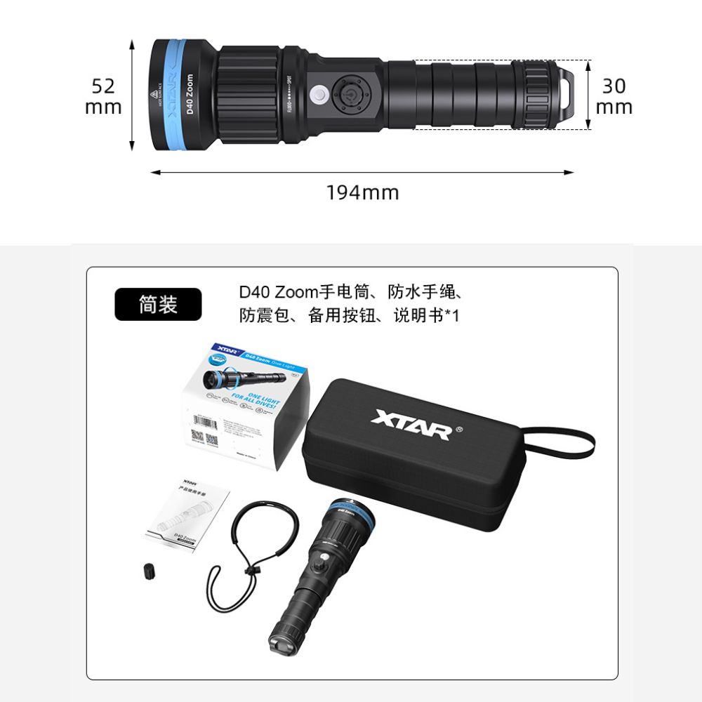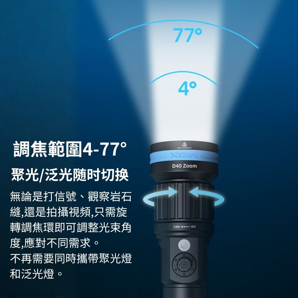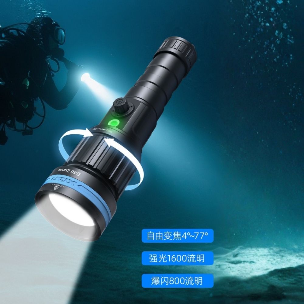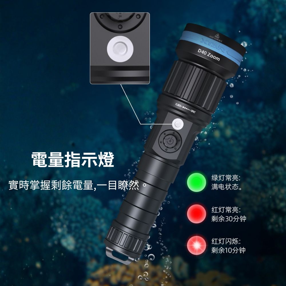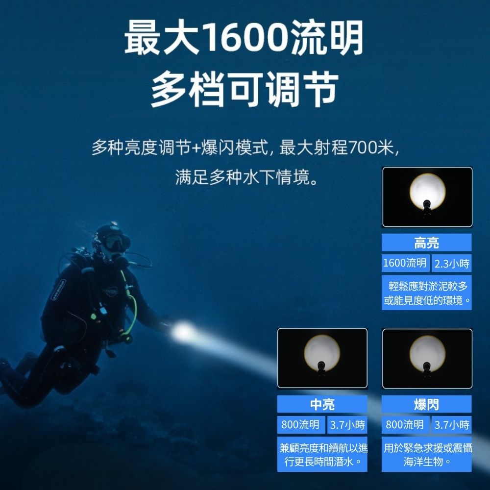 XTAR D40 1600流明 700米 防水潛水手電筒 無段變焦 爆閃功能 電量顯示 TYPE-C