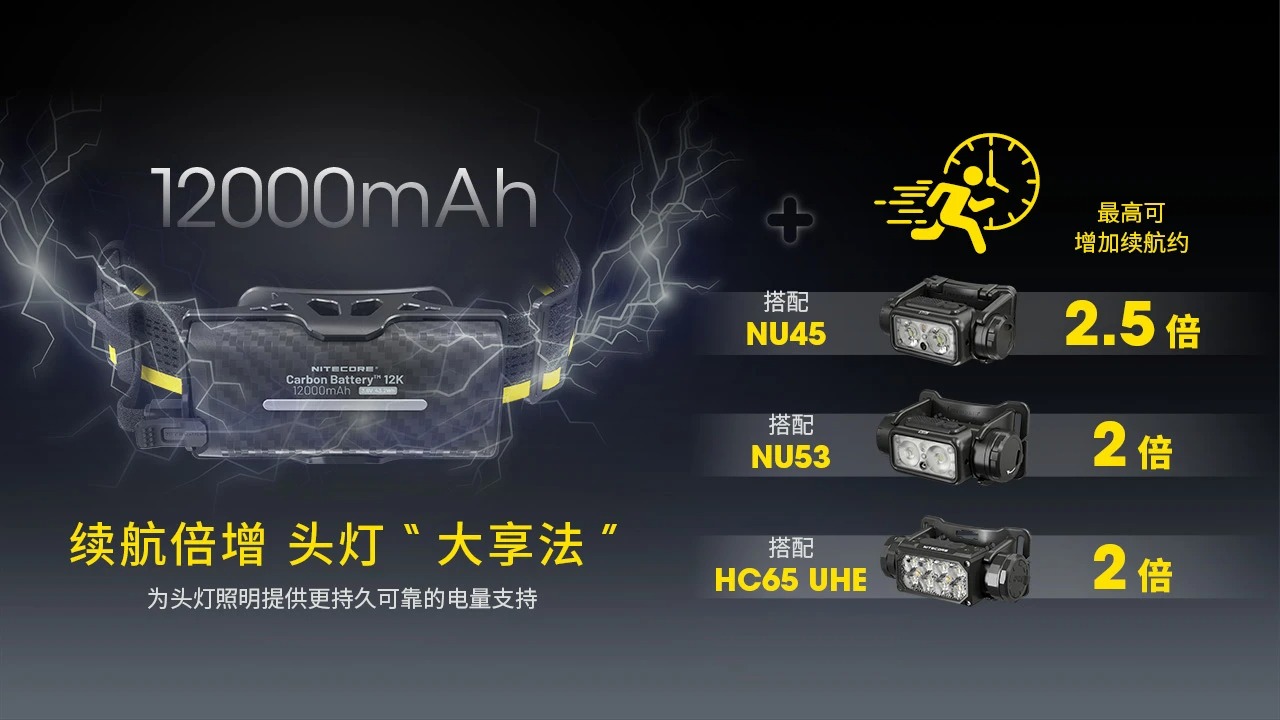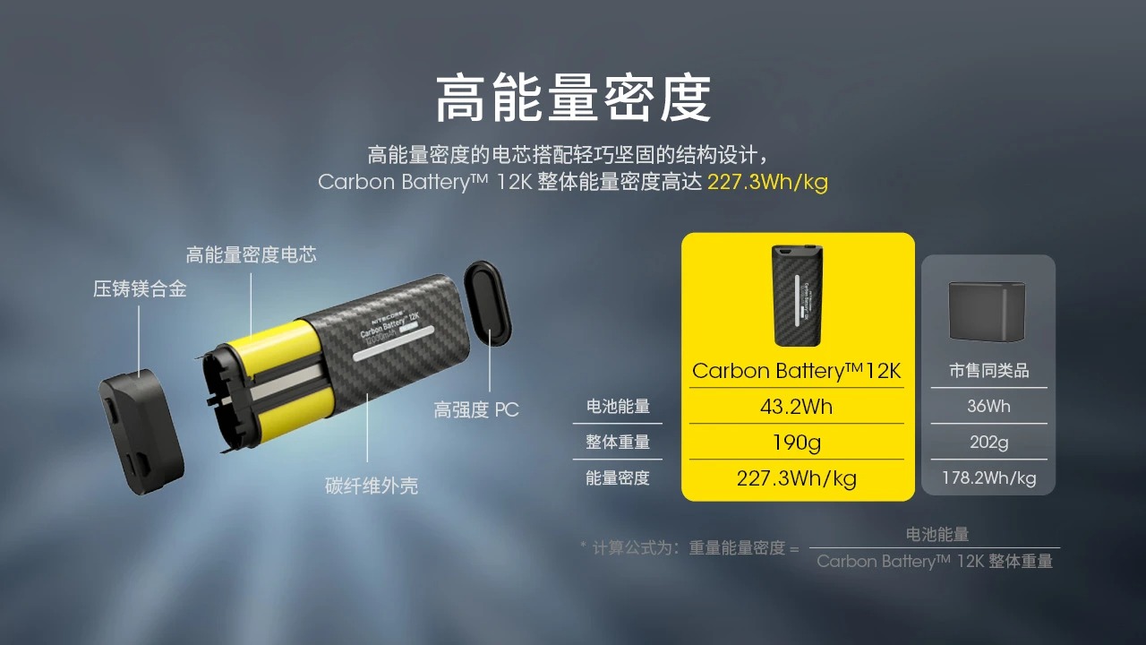 NITECORE Carbon Battery 12K 頭燈續航增強組 輕量碳纖維 12000mAh