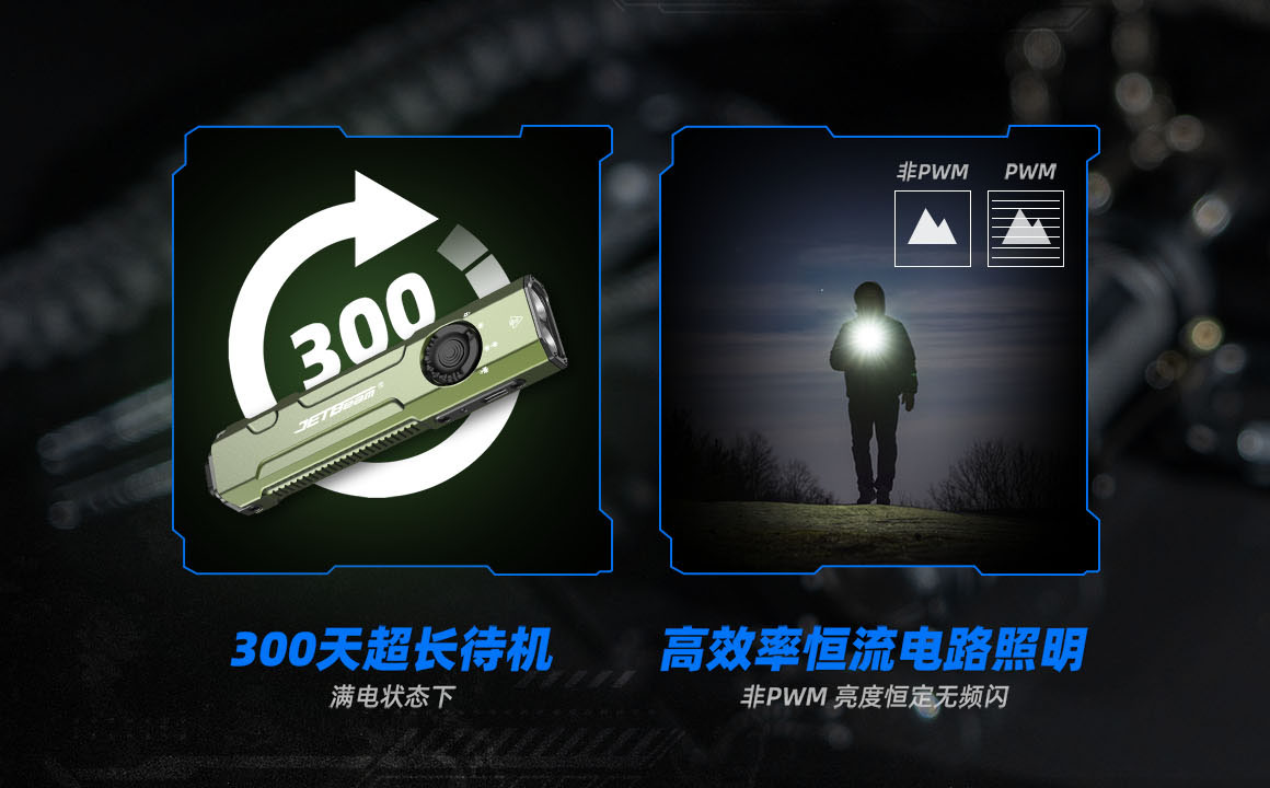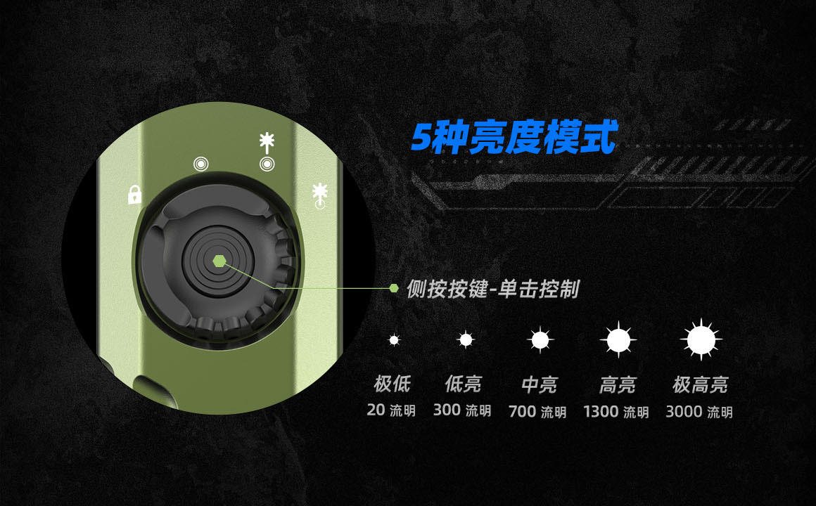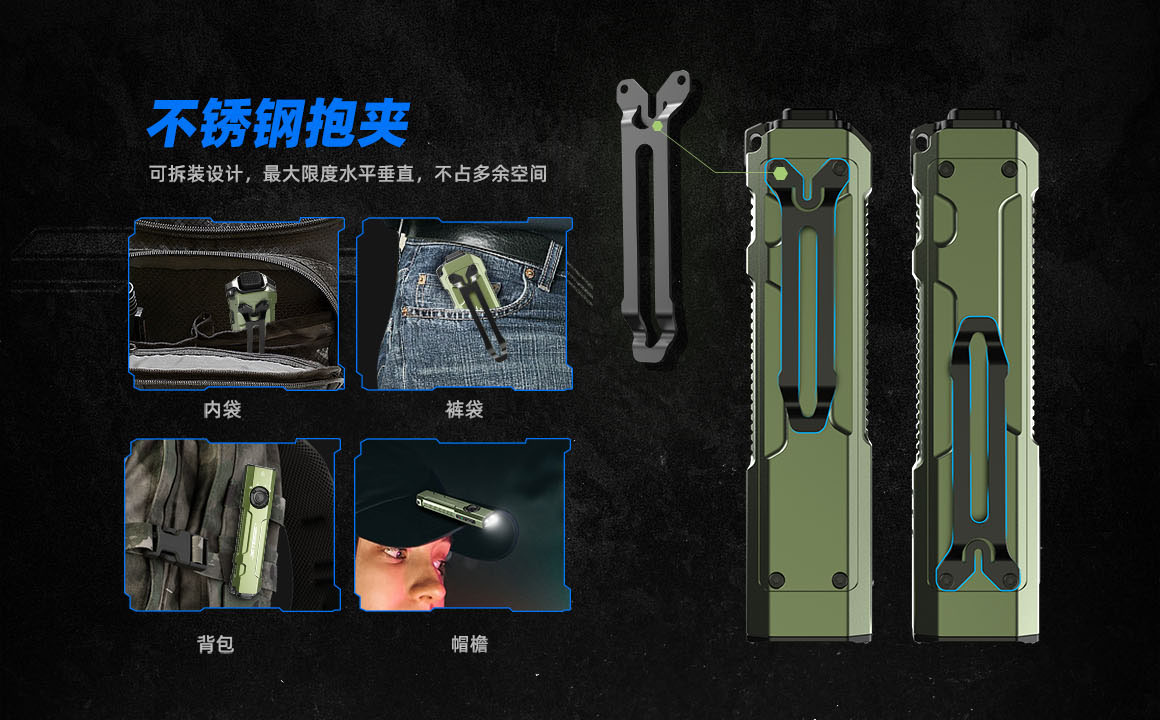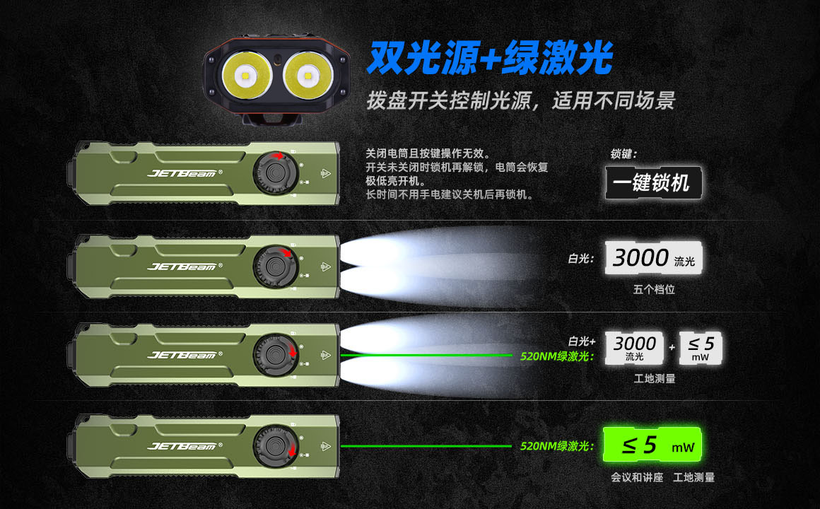 JETBeam E26 【戰術版】3000流明 270米 EDC手電筒 白光+綠光束 尾按戰術開關 可拆卸背夾