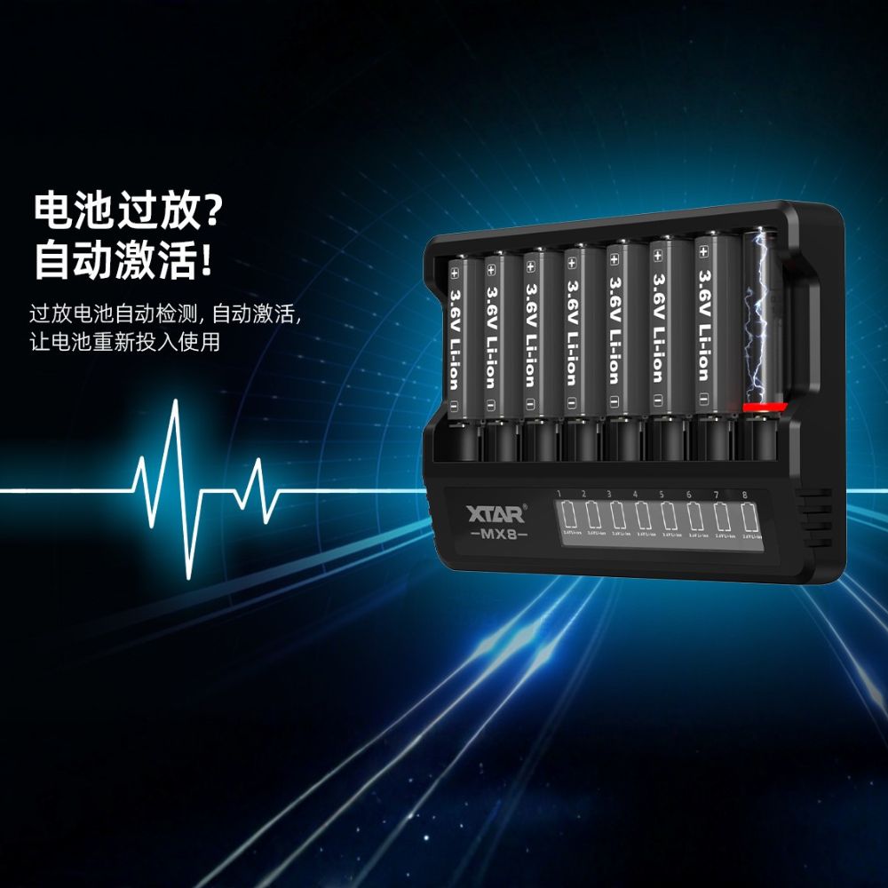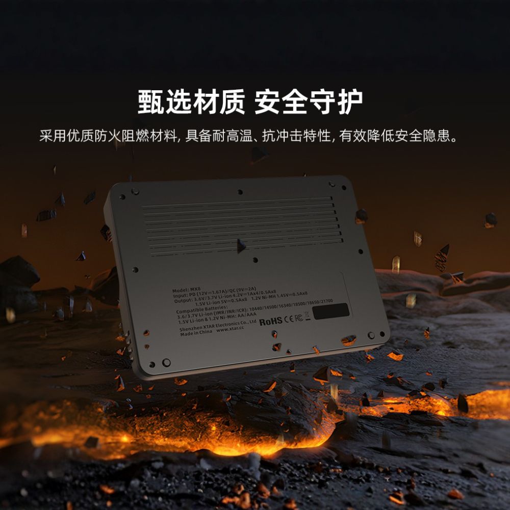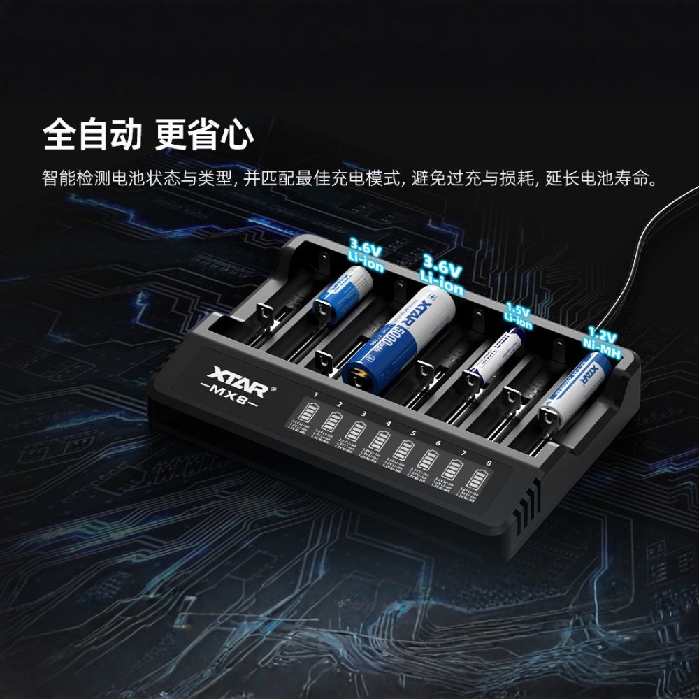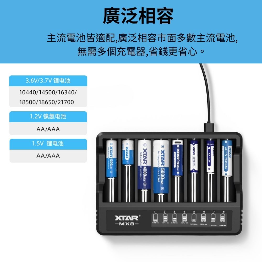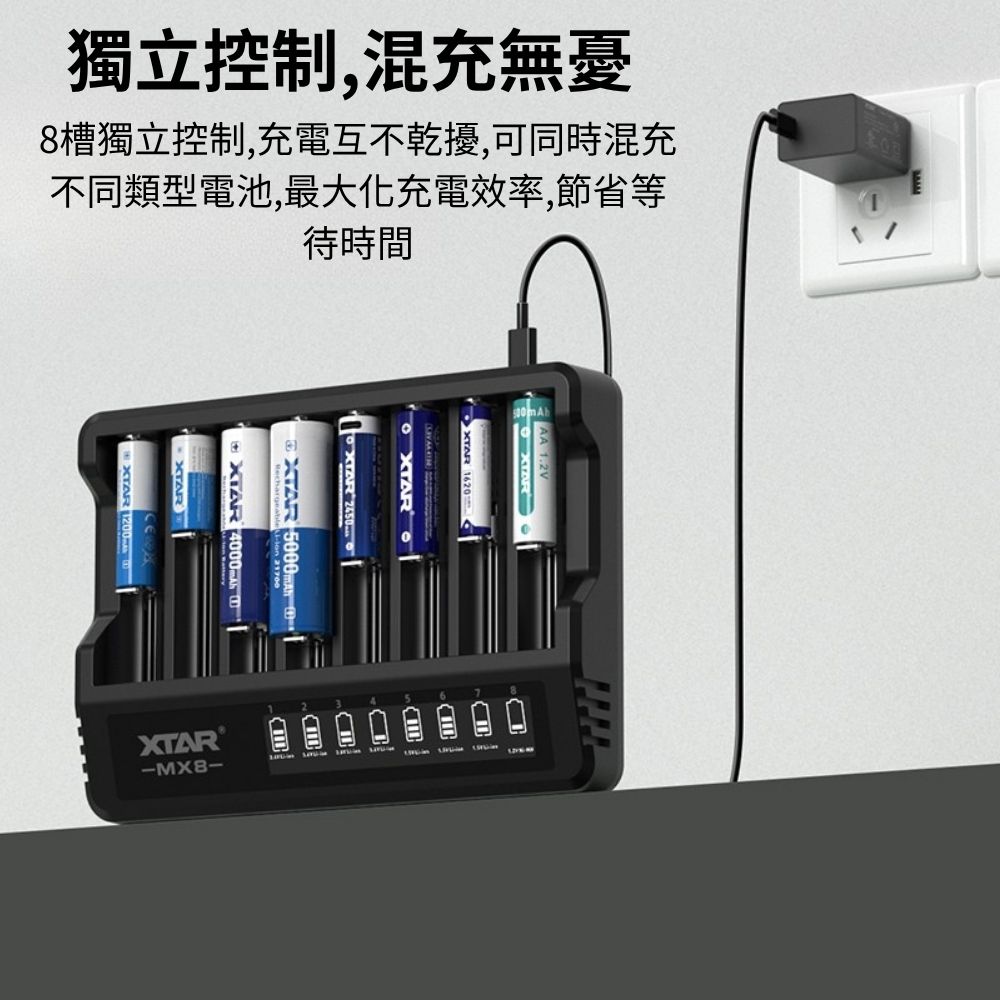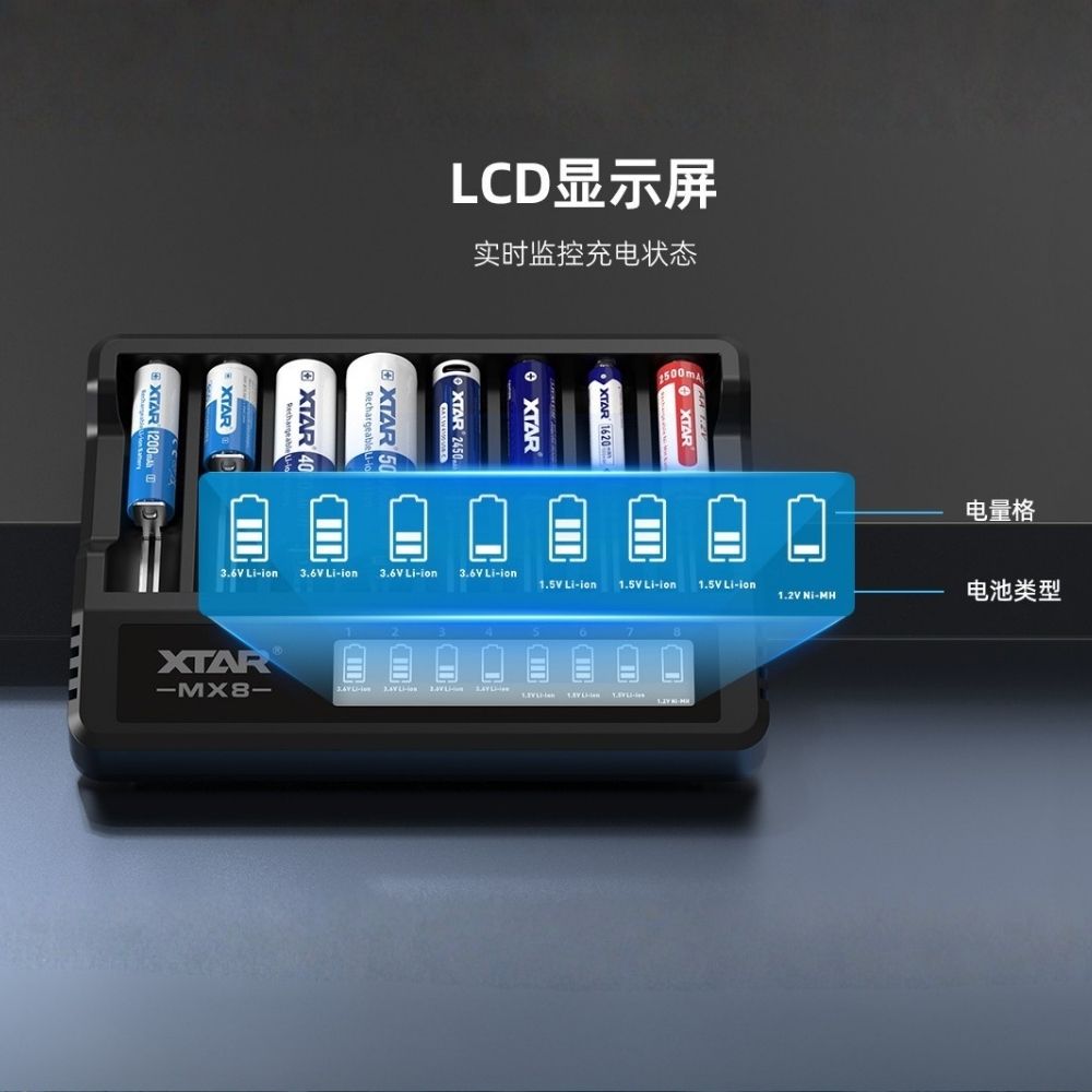 XTAR MX8 8槽智慧充電器 支持混充 LCD顯示 TYPE-C 多源供電