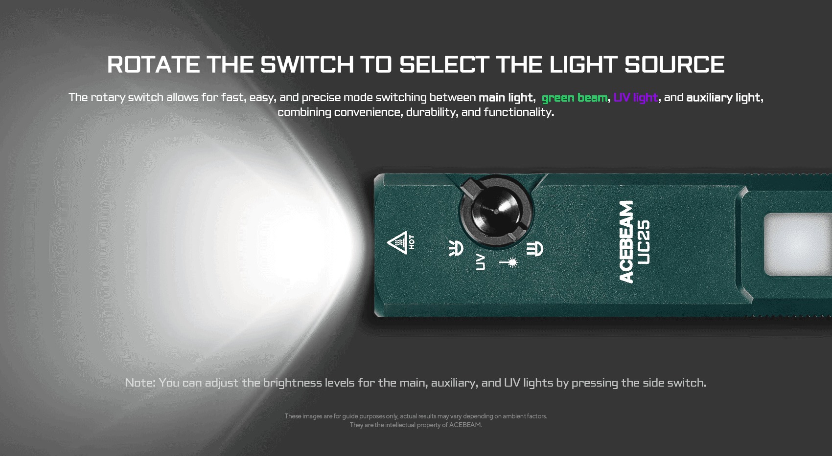 【即將到貨】ACEBEAM UC25 3100 流明 多功能戰術 EDC 手電筒 四光源+側燈 冷白/高顯/UV/綠點 尾磁 特惠價
