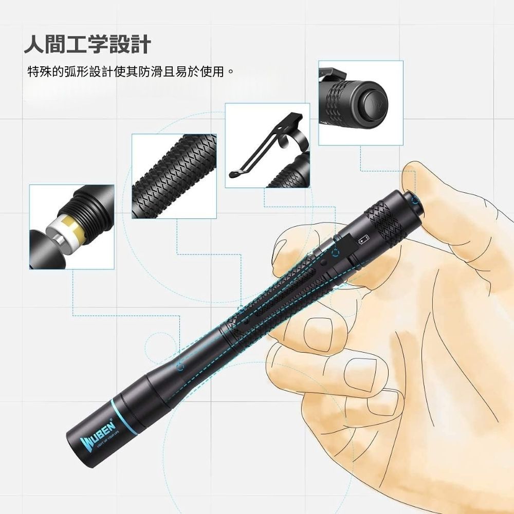 WUBEN E19 (日本版) 200流明 高顯色性筆燈 CRI內附電池 219C燈珠 記憶檔位 眼科醫生燈具 AAA 特惠價