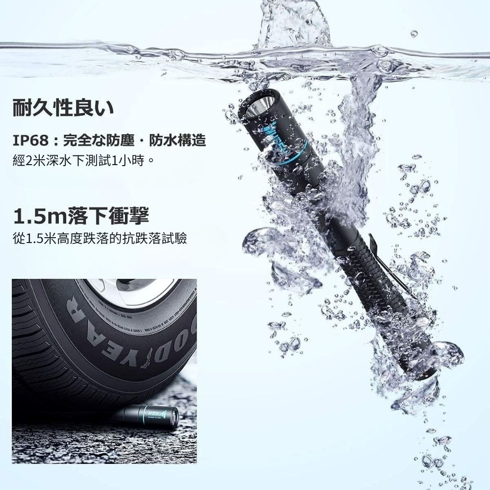 這款 WUBEN E19 高顯色筆燈,搭載日亞化 219C LED,最高可輸出200流明光亮,演色性(CRI)超過90,能真實呈現物體色彩,非常適合醫護、電工或精細檢視用途。採兩顆 AAA 電池供電,具備記憶檔位的四段模式(高→中→低→生態燈),滿足多種照明需求。機身尺寸為長140 mm、直徑14.8 mm,含電池重量僅48 g,輕巧便攜。並具備軍規堅固設計,防水等級 IP68,適應惡劣環境與日常攜帶。隨附備用 O-環與電池,全面提升實用性與可靠度。