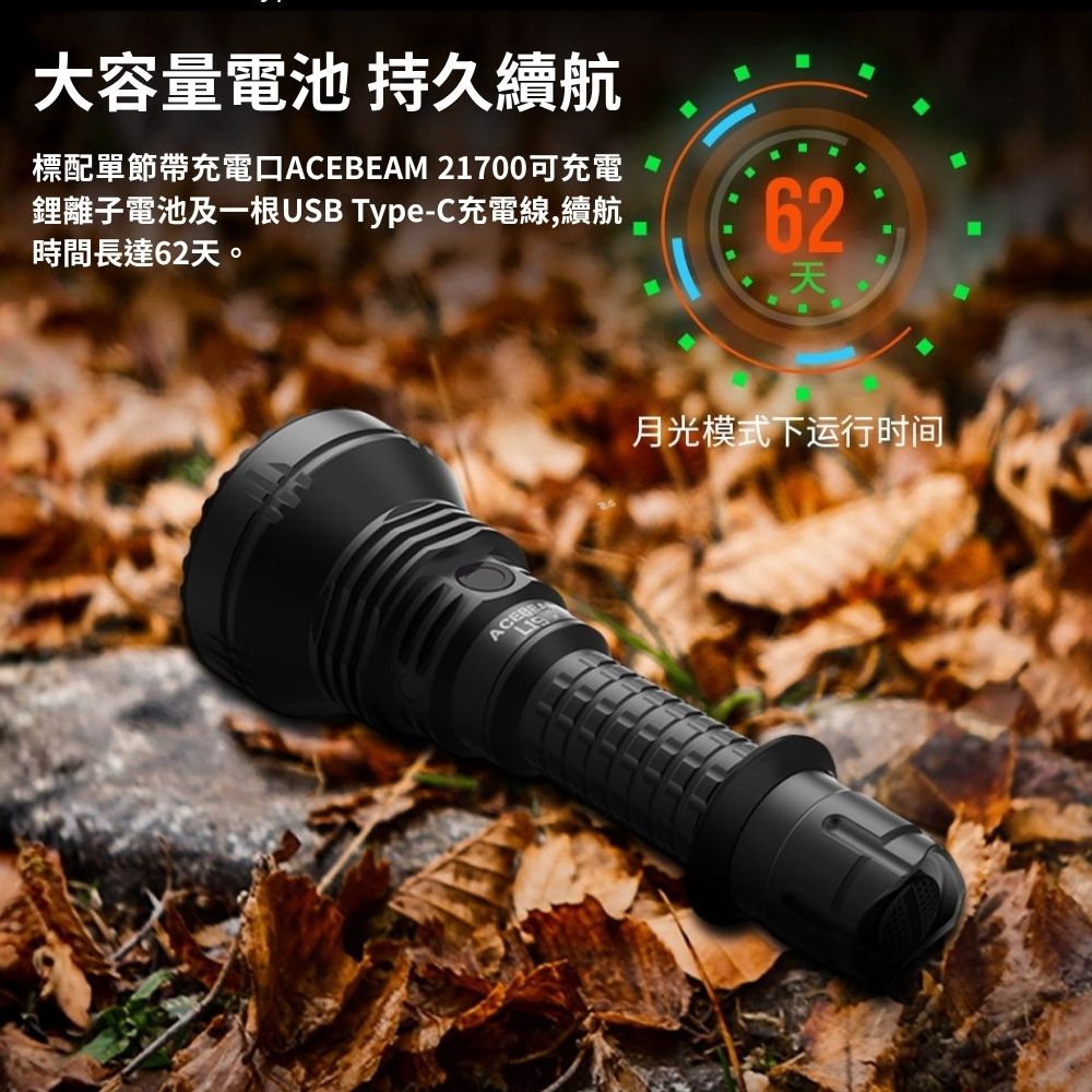 內建:一顆 ACEBEAM USB-C 充電 21700 鋰離子電池