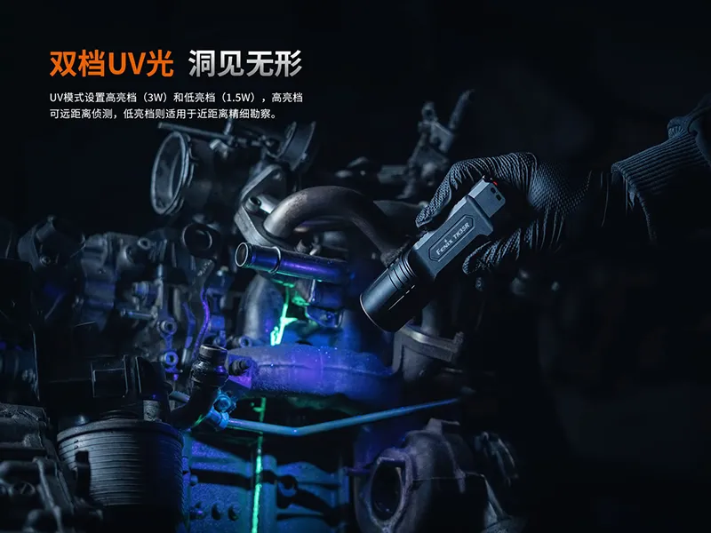 搭載高精度紫外光源,中心波長為365 nm,可用於檢驗證件、防虛擬碼等