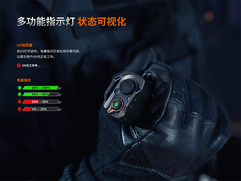 靈感撥盤設計允許無縫切換多種模式,包括白光模式、鎖定模式及UV模式