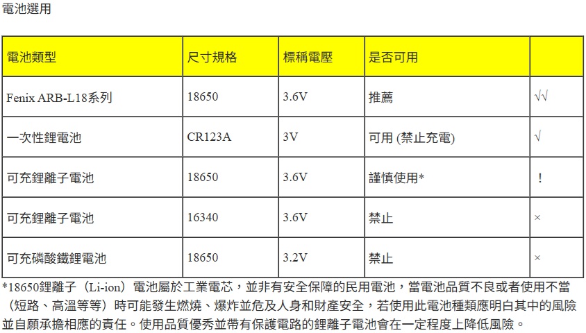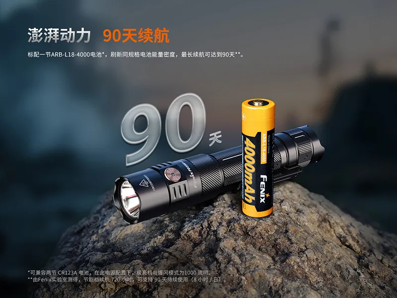 ◎標配1節Fenix ARB-L18-4000電池,相容兩節CR123A電池 ◎手電筒頸部設有隱藏式Type-C充電介面,即插即充,方便快捷 ◎防滾、防滑的筒身設計,配置抱夾,方便夾持 ◎恒流電路,亮度恒定 ◎防反接設計,防止電池裝反對電路造成危害 ◎使用雙面增透膜鋼化玻璃鏡片 ◎尺寸(±10%):140.5(筒長)×26.5(筒頭直徑)×23.6(筒身直徑)毫米 ◎重量(±10%):145克(含電池)