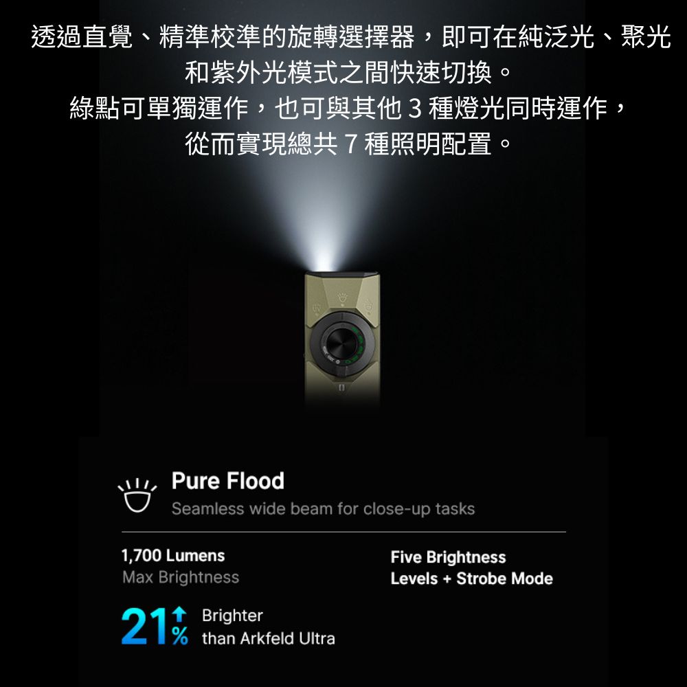 OLIGHT ArkPro Ultra 1700流明 205米 EDC 四合一手電筒 7種模式 純泛光 聚光 UV 綠點