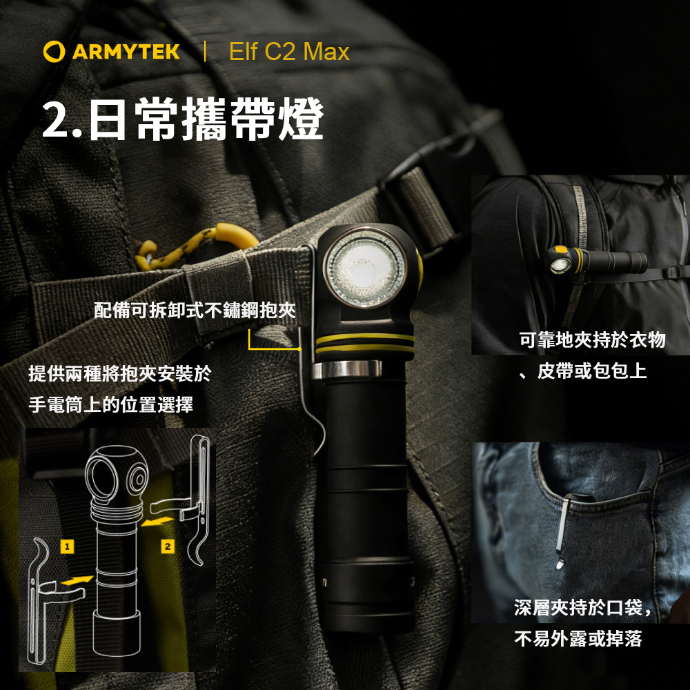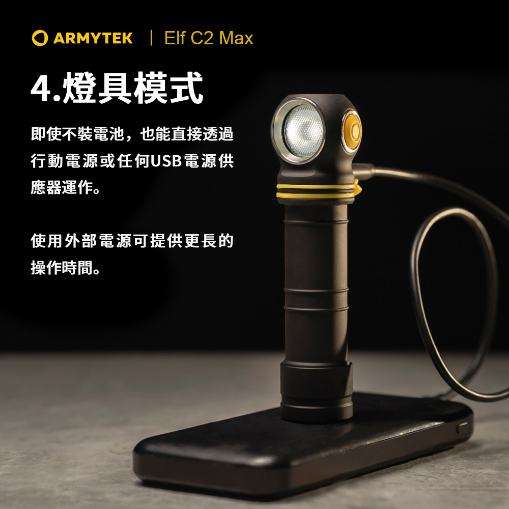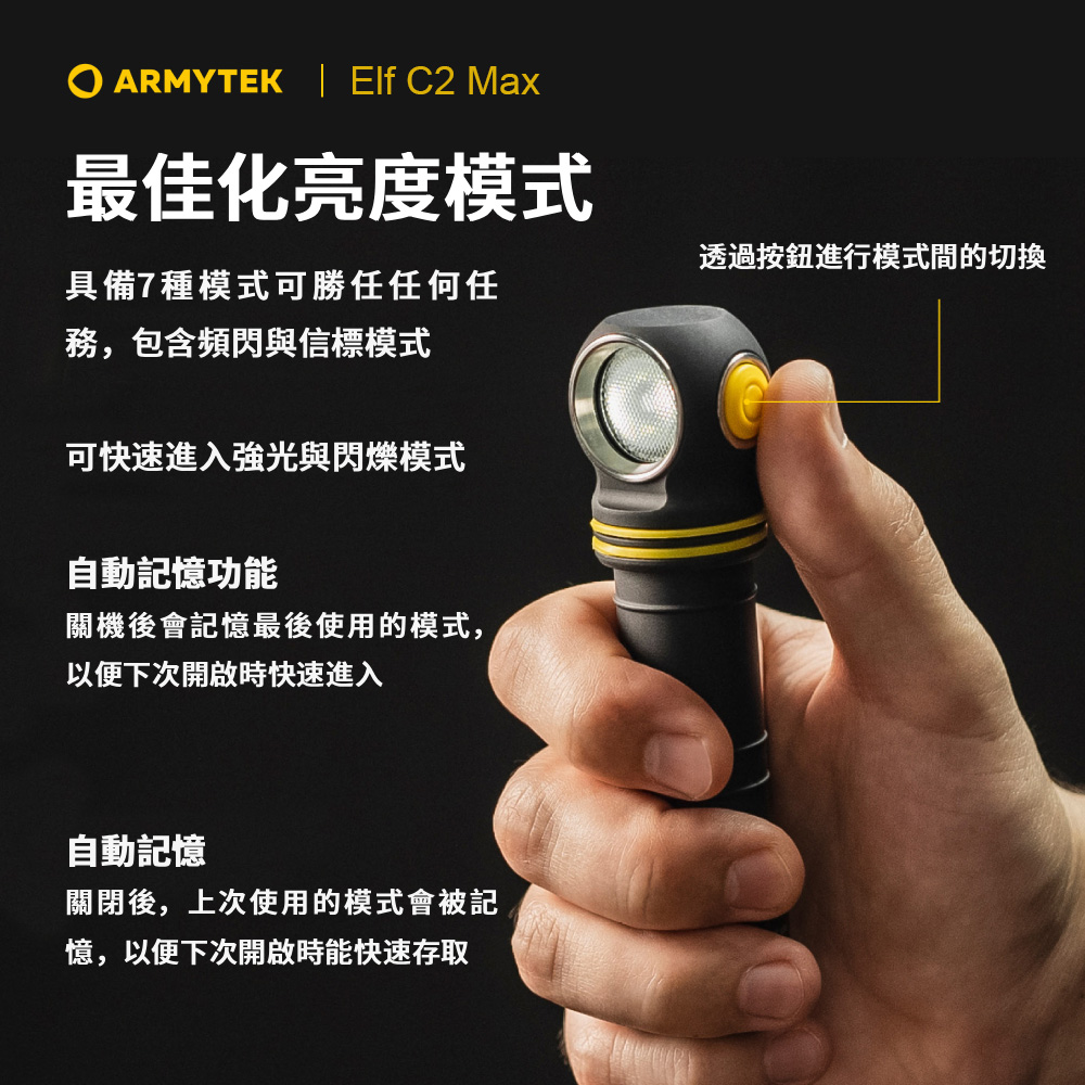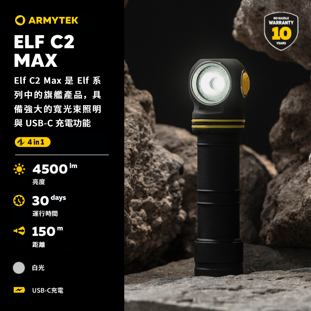【預購】Armytek Elf C2 Max 4500流明 150米 高亮度多模式 手電筒/頭燈 USB-C 充電 磁吸尾蓋 21700 特惠價