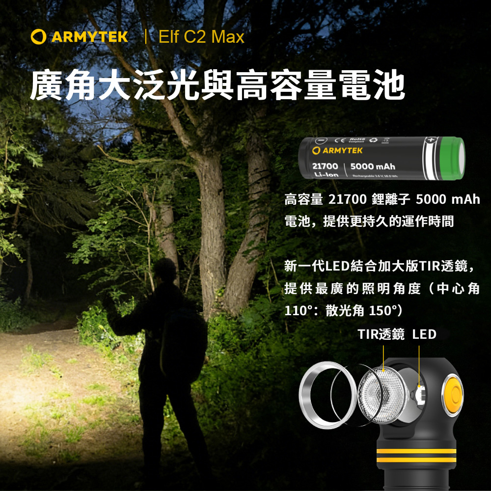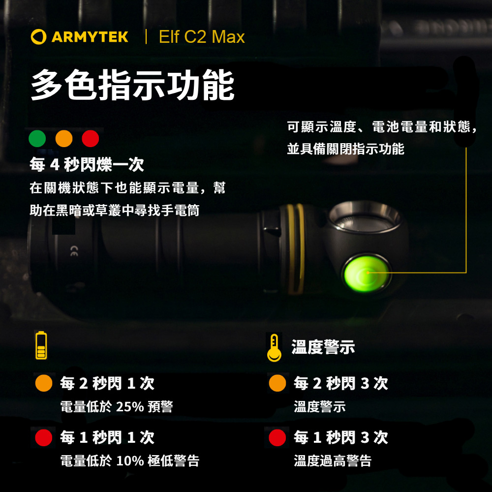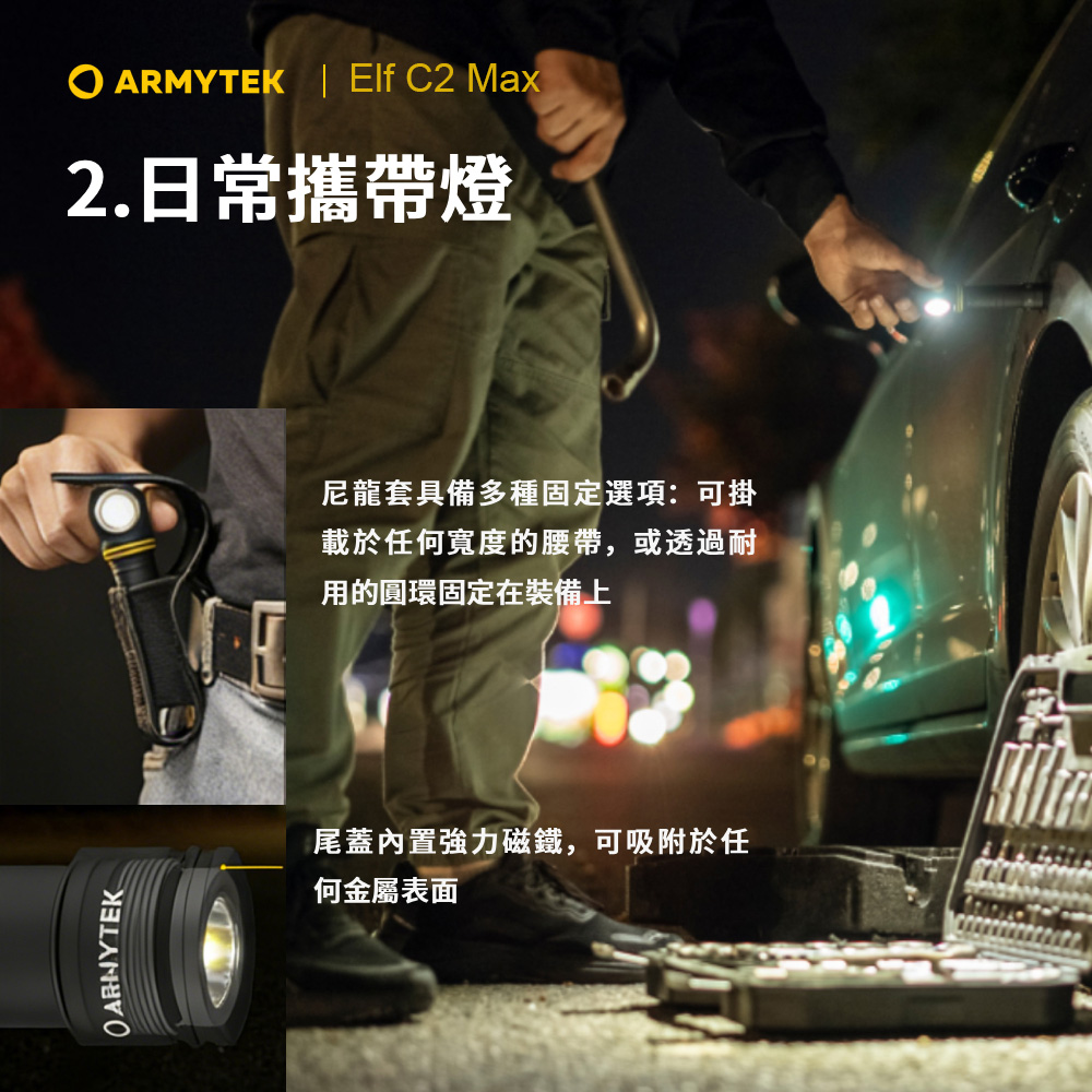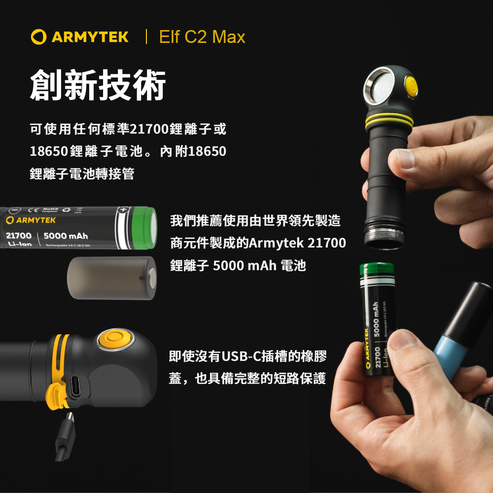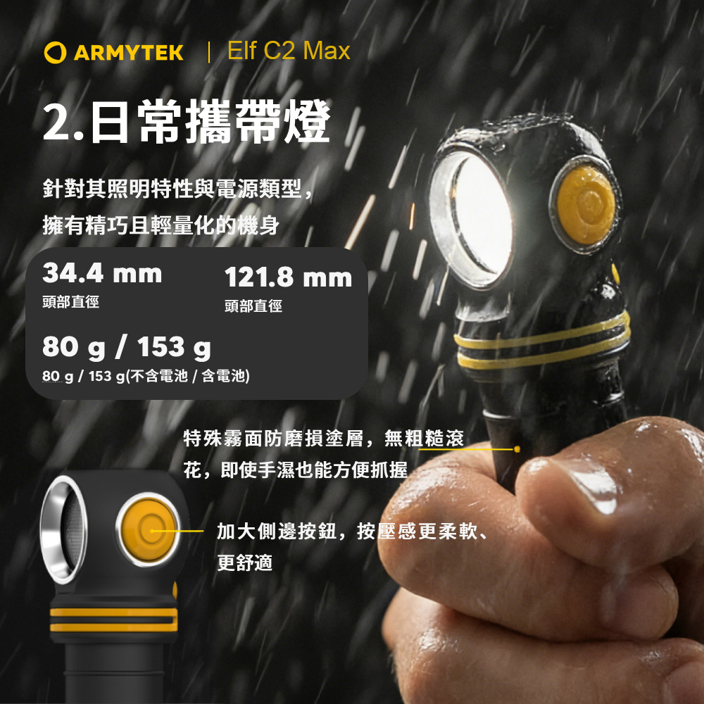【預購】Armytek Elf C2 Max 4500流明 150米 高亮度多模式 手電筒/頭燈 USB-C 充電 磁吸尾蓋 21700 特惠價