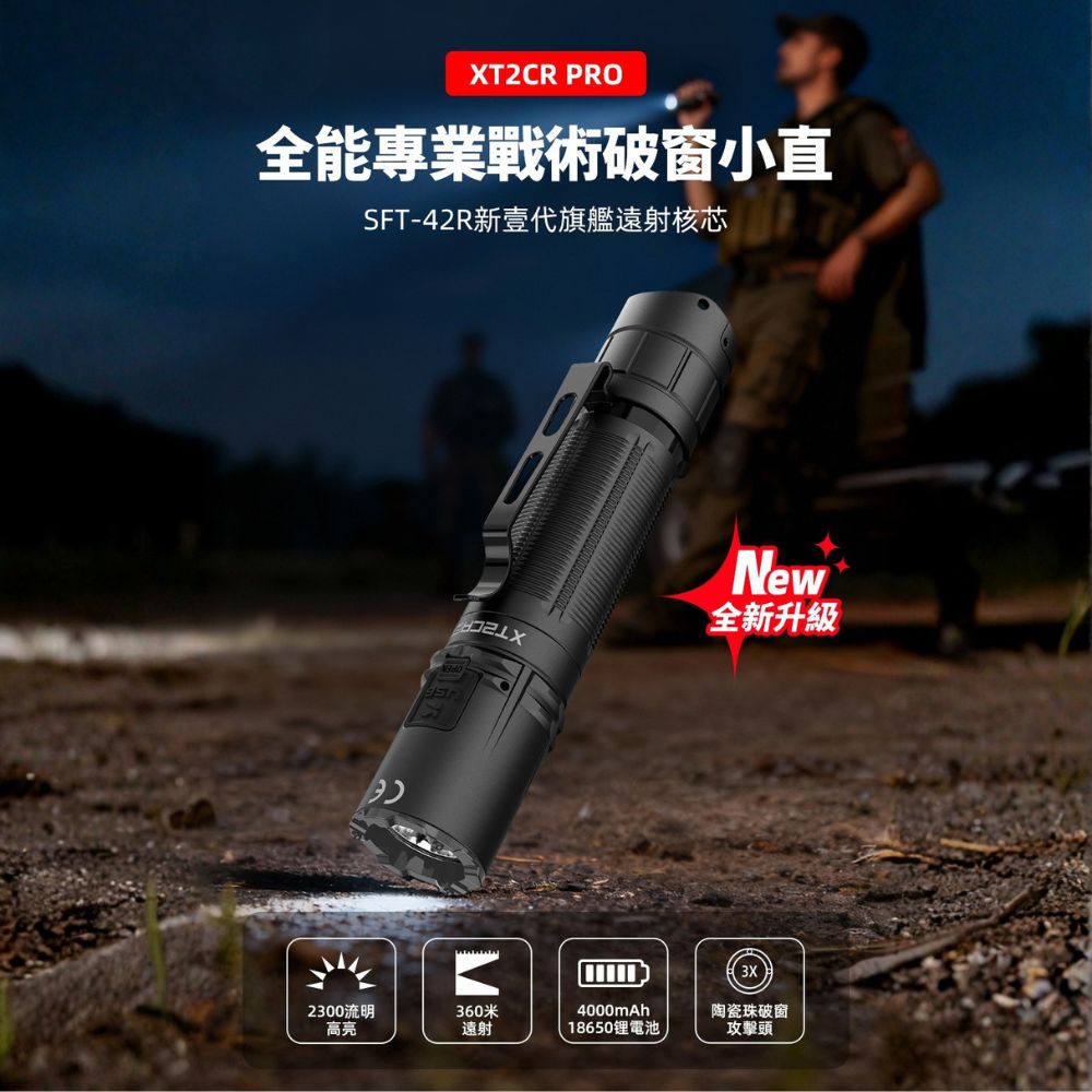 KLARUS XT2CR PRO 2025 2300流明 360米 警用戰術小直筒 一鍵爆閃 一鍵強光 陶瓷珠攻擊頭 18650