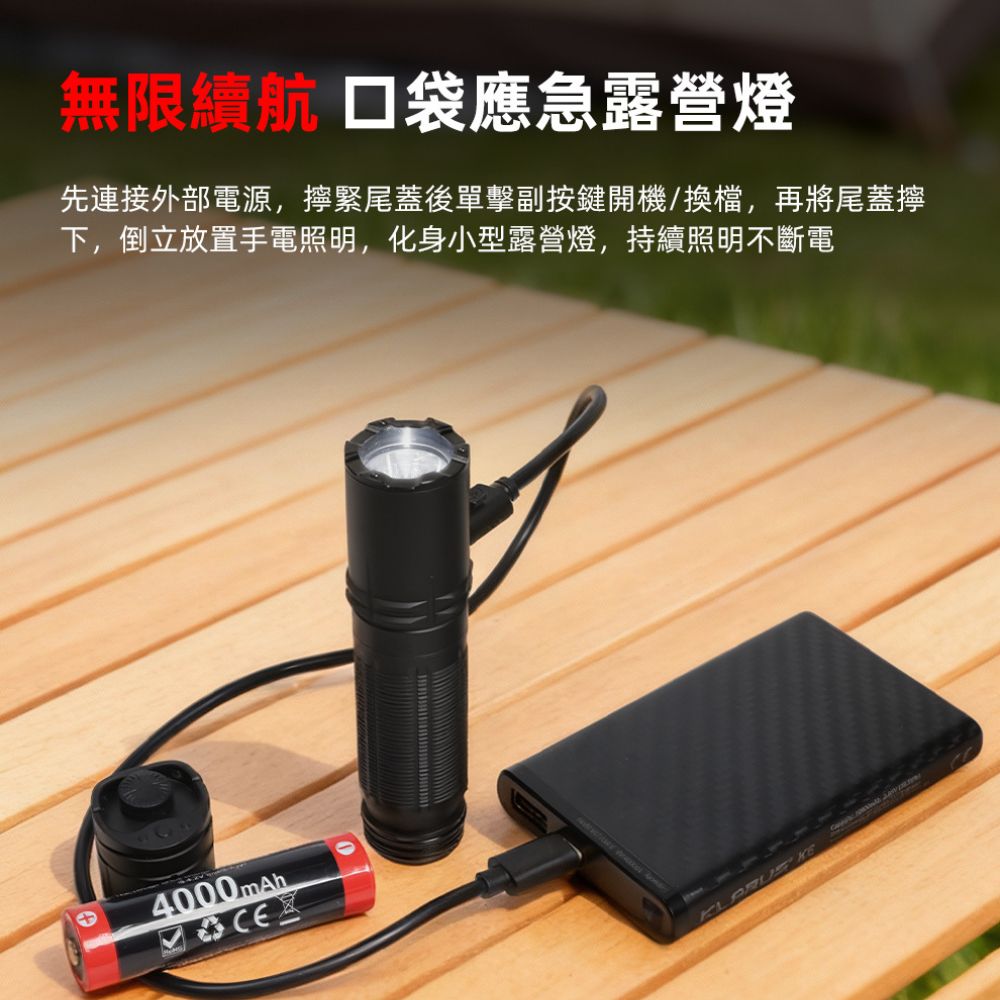 | 電池類型 | 1 × 18650 可充電鋰電池(相容 CR123A ×2) |
