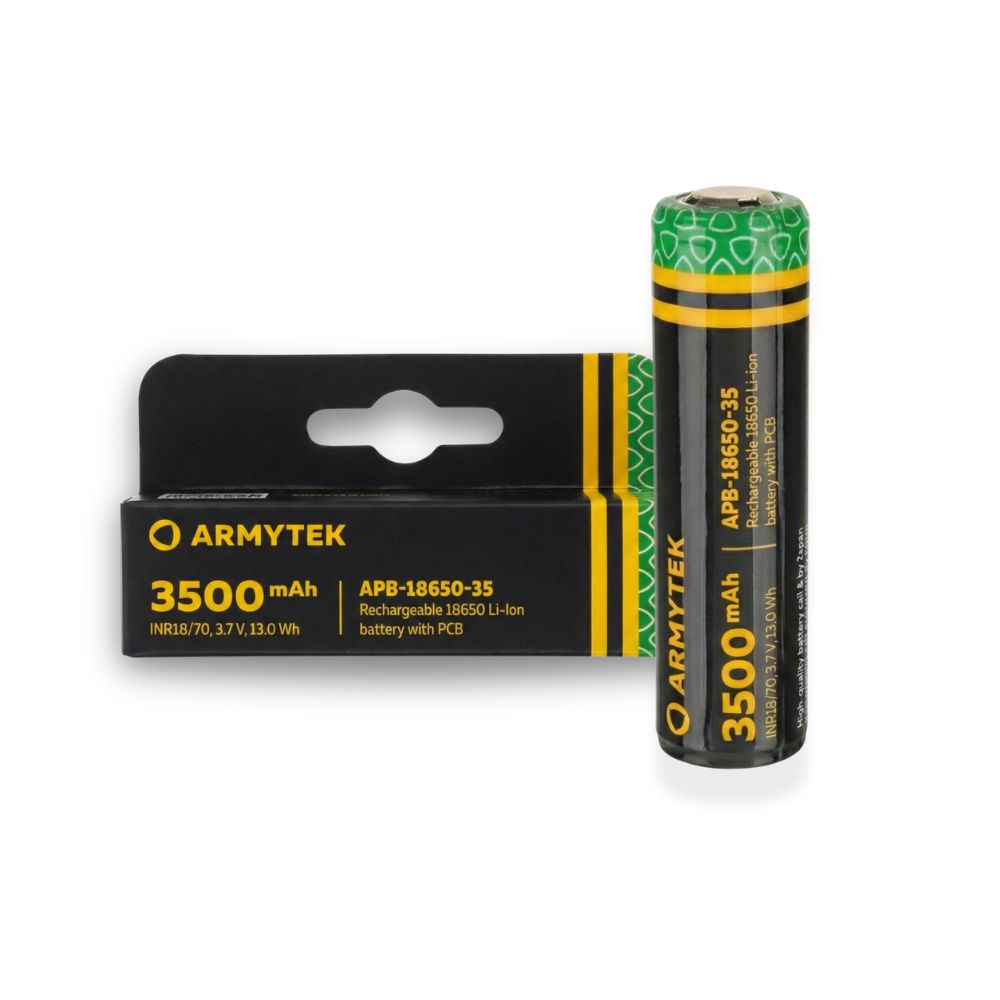Armytek 原廠 18650 鋰離子電池,具備 3500mAh 大容量, 專為高電流設備設計,提供更長續航與穩定輸出, 相容於大多數 Armytek 手電筒。產品特色