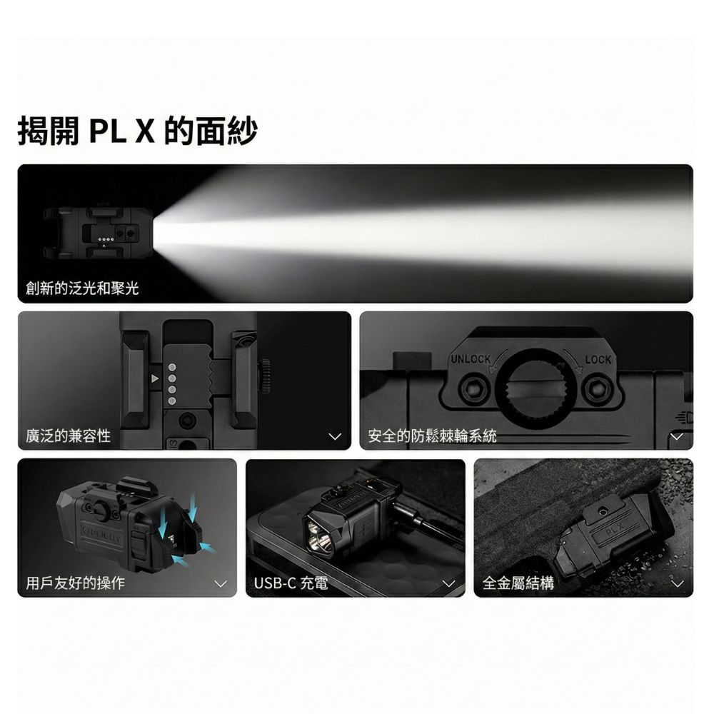 【即將到貨】OLIGHT PL X 1200流明 300米 輕型戰術燈 聚光/泛光雙光束 鬆動棘輪 相容導軌 TYPE-C 充電