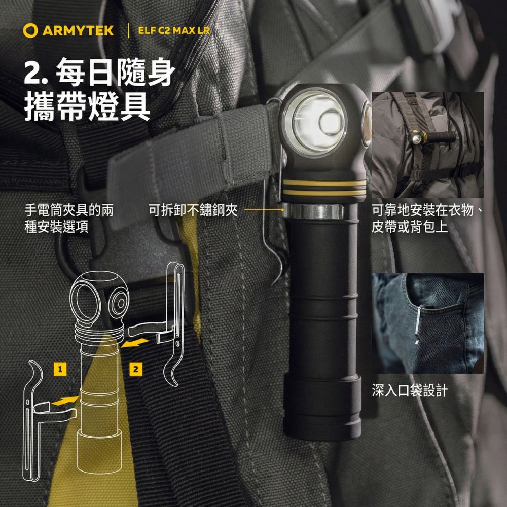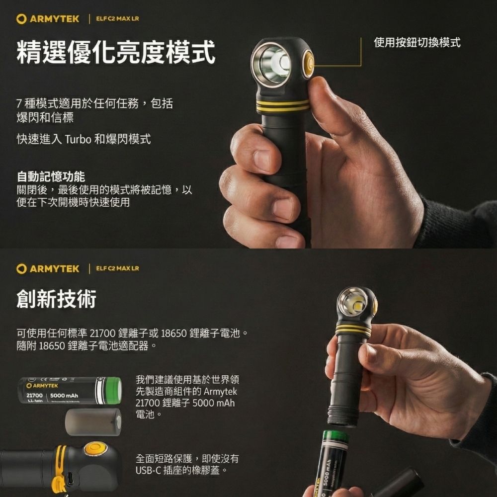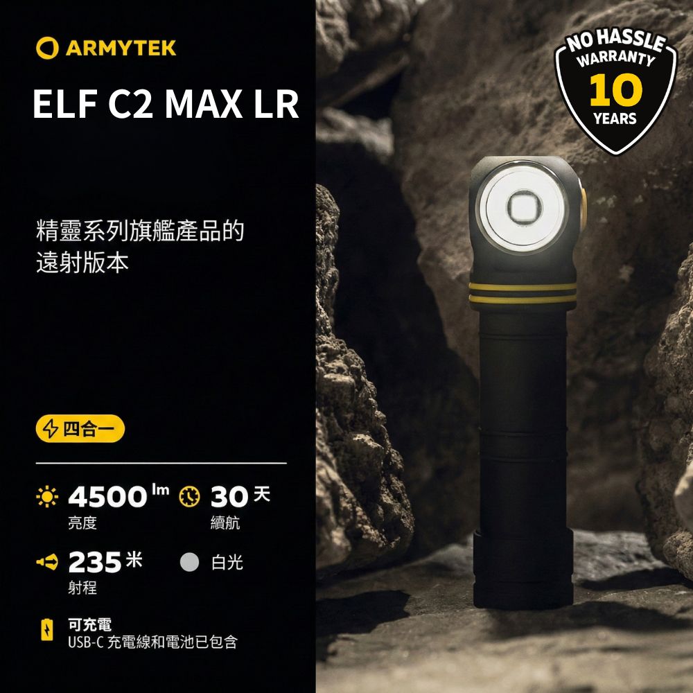 Armytek Elf C2 Max LR 4500流明 235米 高亮度遠射版手電筒/頭燈 USB-C 充電 磁吸尾蓋 21700