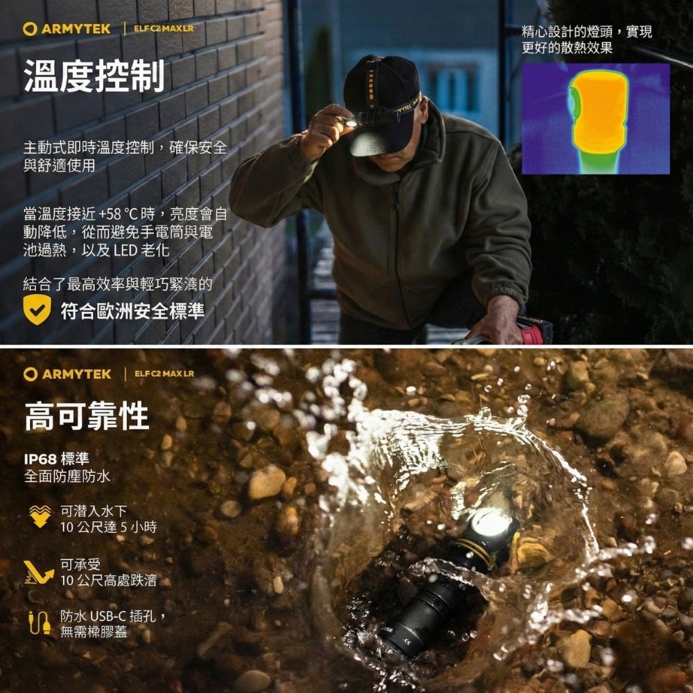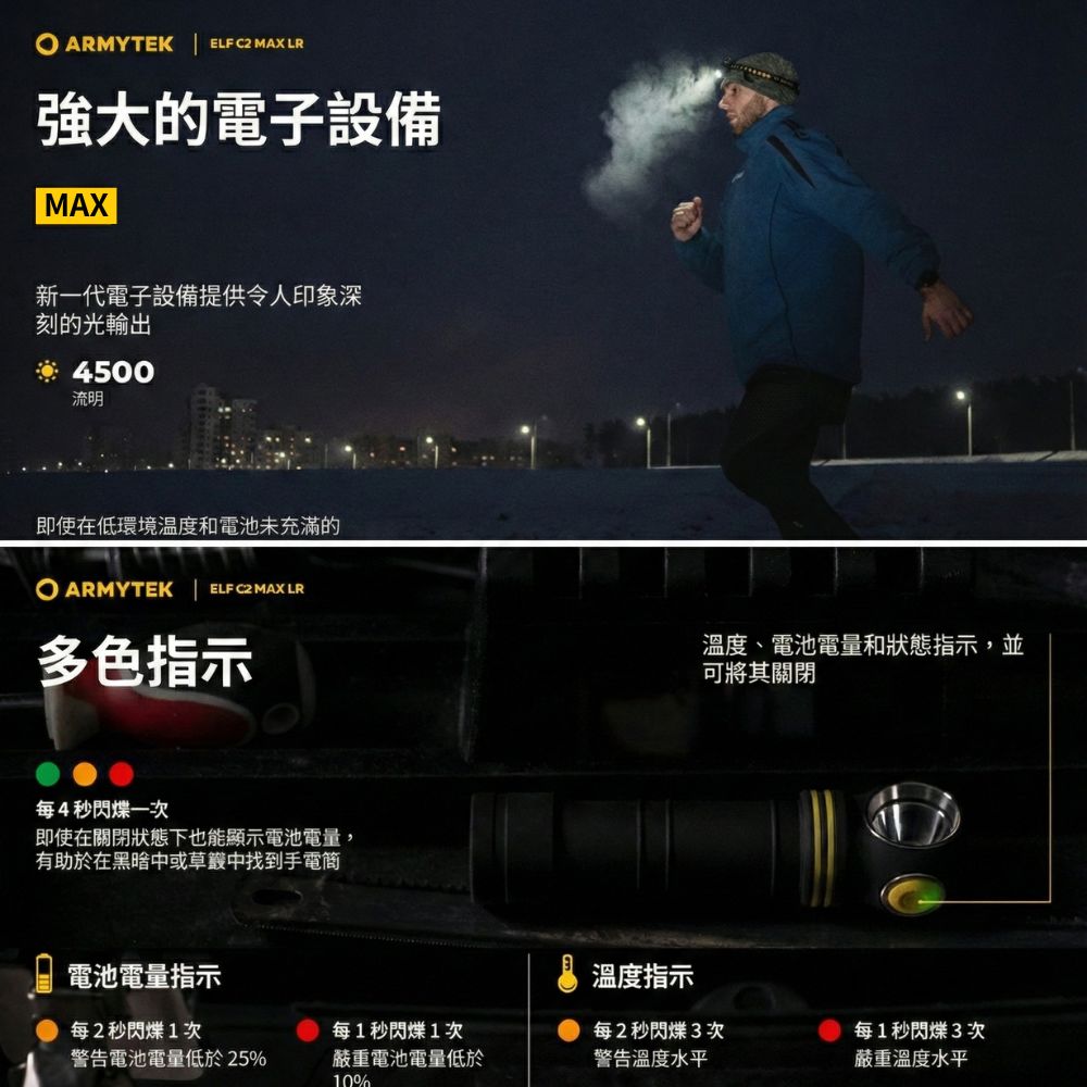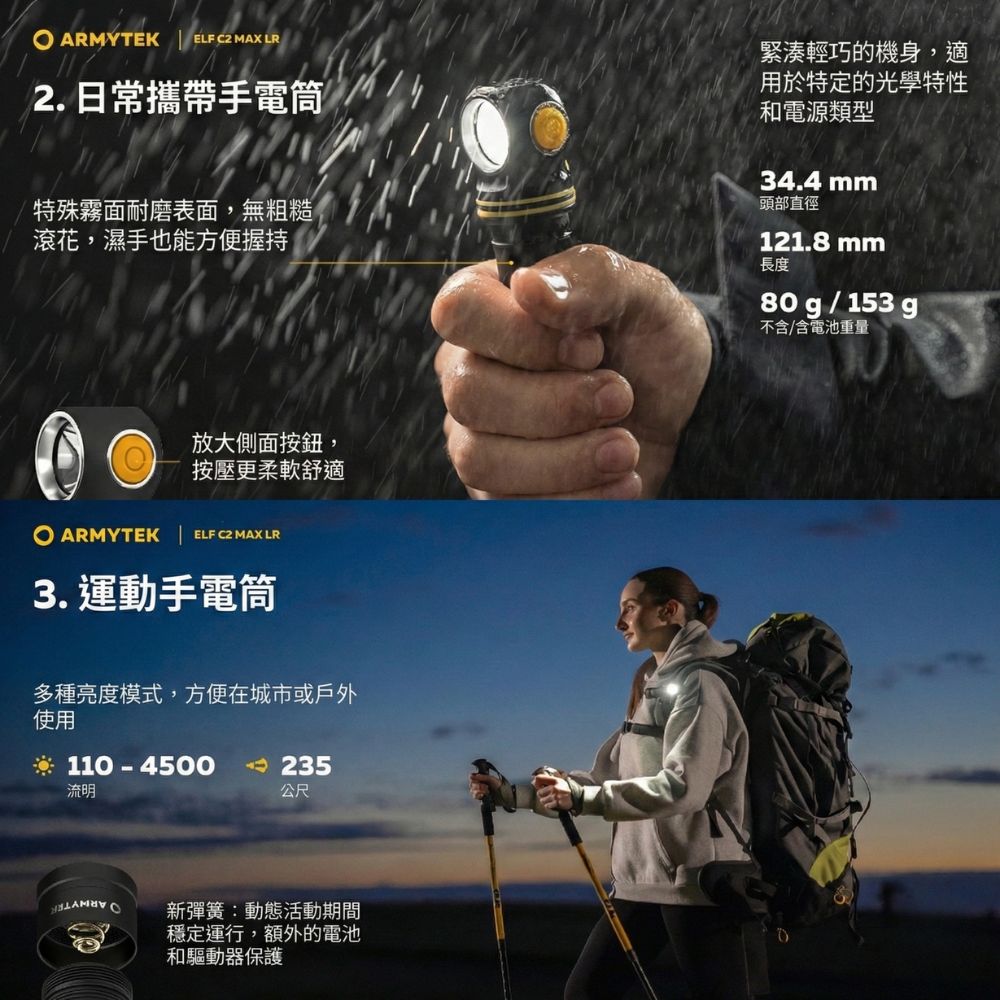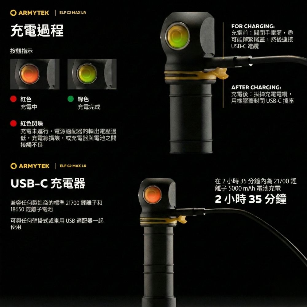 Armytek Elf C2 Max LR 4500流明 235米 高亮度遠射版手電筒/頭燈 USB-C 充電 磁吸尾蓋 21700