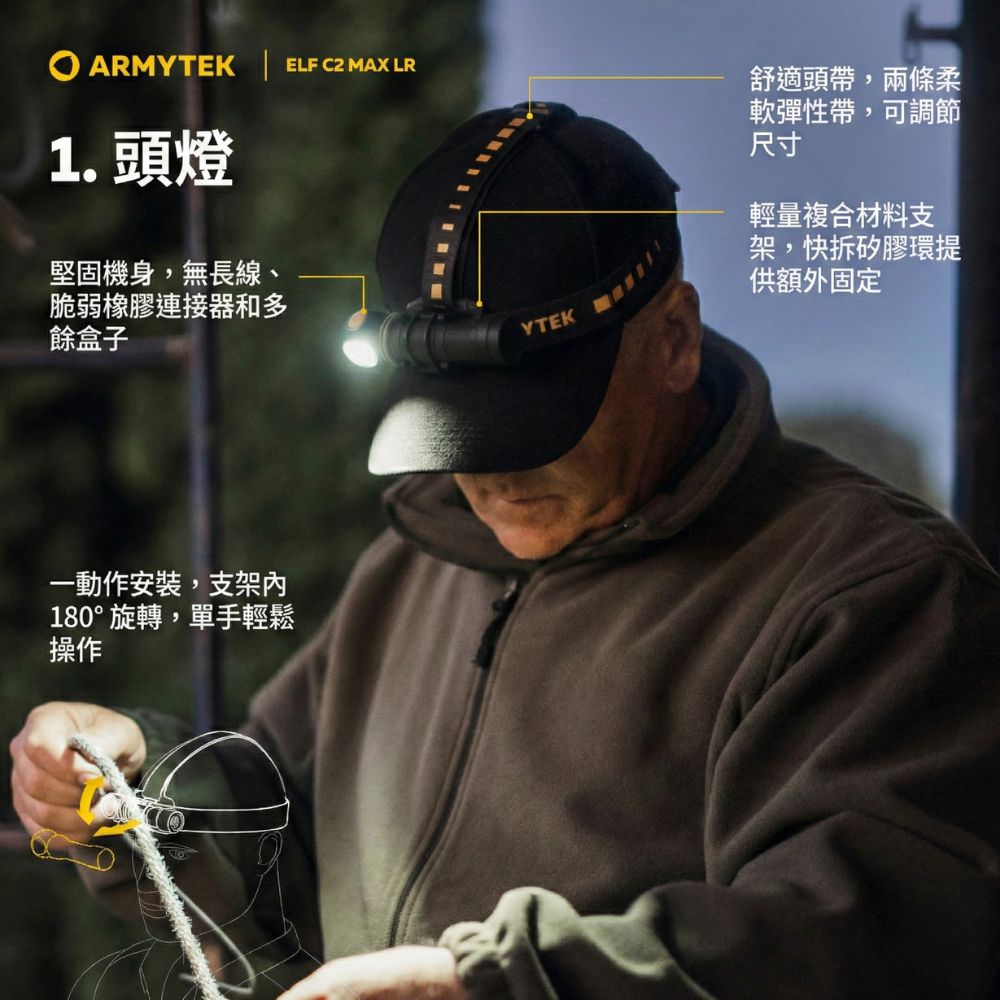 ELF 系列旗艦產品的遠射版本。Elf C2 Max LR 為 Elf C2 Max 多功能手電筒的遠距離升級型號, 在光輸出與投射距離上毫不妥協,兼顧遠射能力與實用泛光表現。