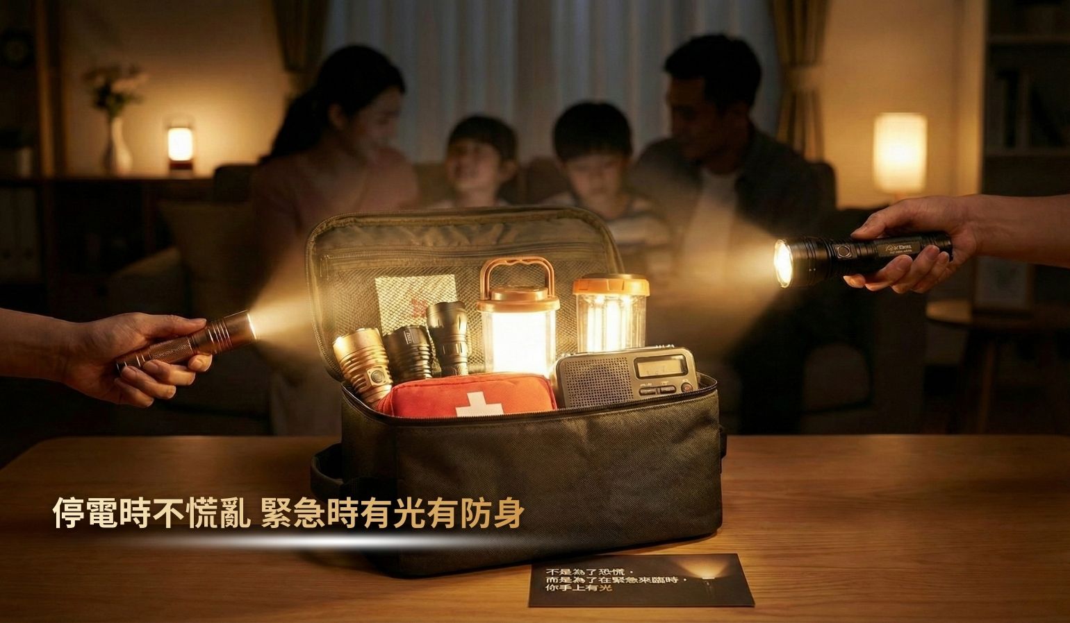 這是一套為家人與自己準備的安心備用方案。 把希望放在明天, 把準備留在今天。 這不是末日裝備, 而是你應該擁有的基本準備。 地震 停電 突發狀況發生時, 一支可靠的照明工具, 往往就是冷靜的開始。