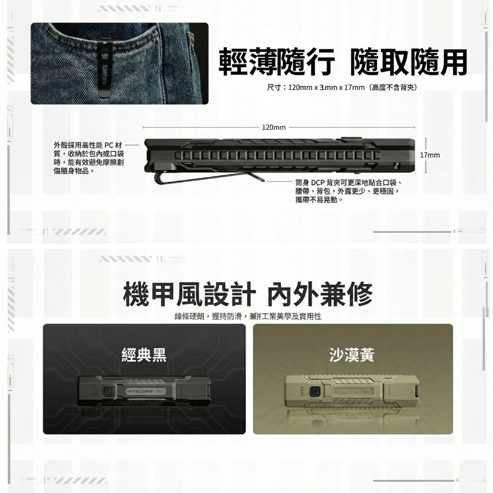Nitecore EDC07 是一款革命性的超薄 EDC (日常攜帶) 手電筒。