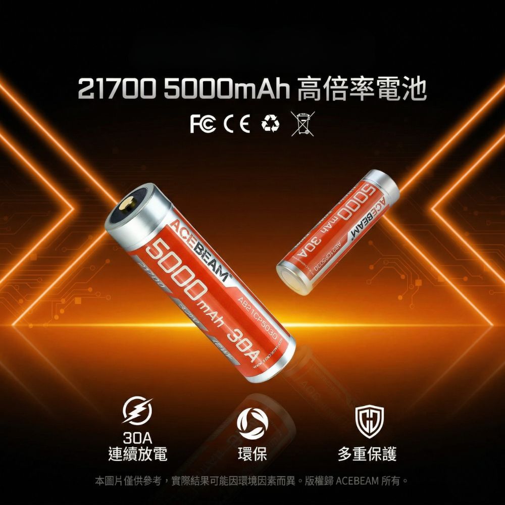 Acebeam AB21CP5030 21700 5000mAh 全極耳 高放電 動力電池 30A 持續放電 X30