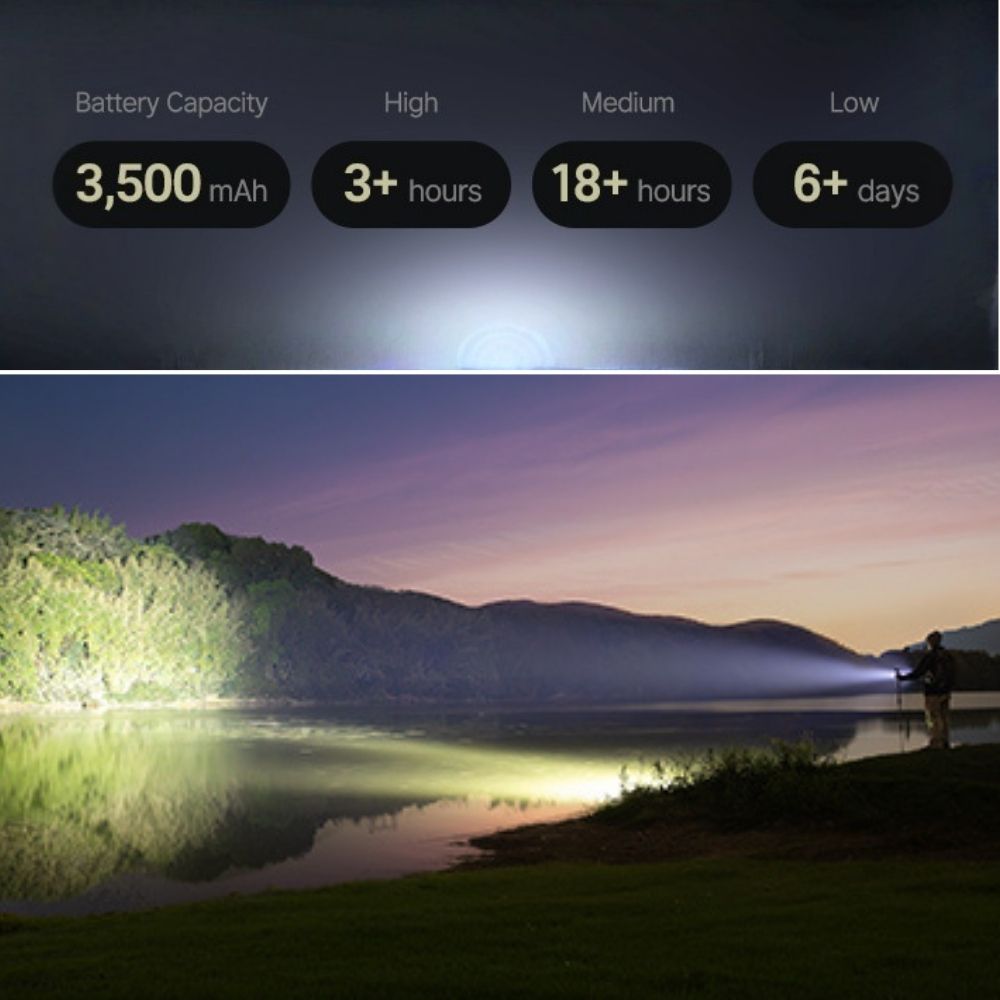 - 超長續航力: 搭載 3500mAh 18650 電池,月光模式下續航最長可達 100 天,告別頻繁充電的煩惱。