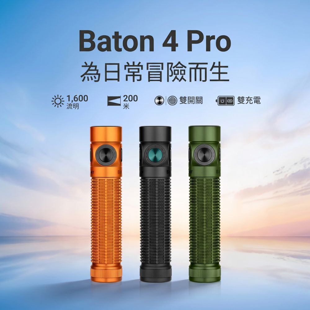 OLIGHT Baton 4 Pro 高性 EDC 手電筒 1600 流明 200米 雙按鍵 磁吸/ Type-C 雙充 19TH