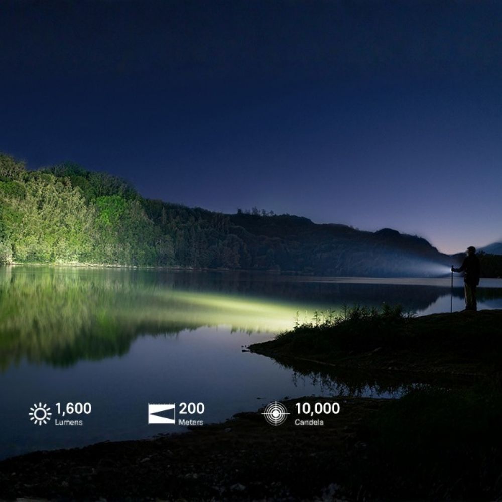 - 提供最高 1,600 流明 與 200 米射程,光斑分佈均勻,完美適配工作與日常任務。