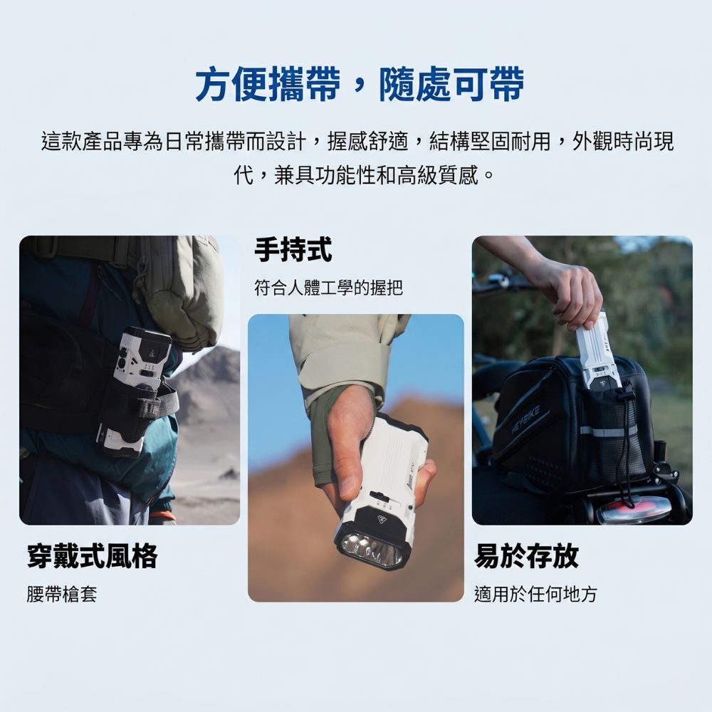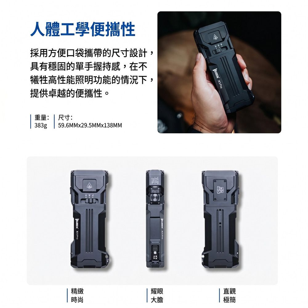◎小巧便攜-僅重383克,單手握持設計。強大且便攜的EDC手電筒,隨身攜帶。